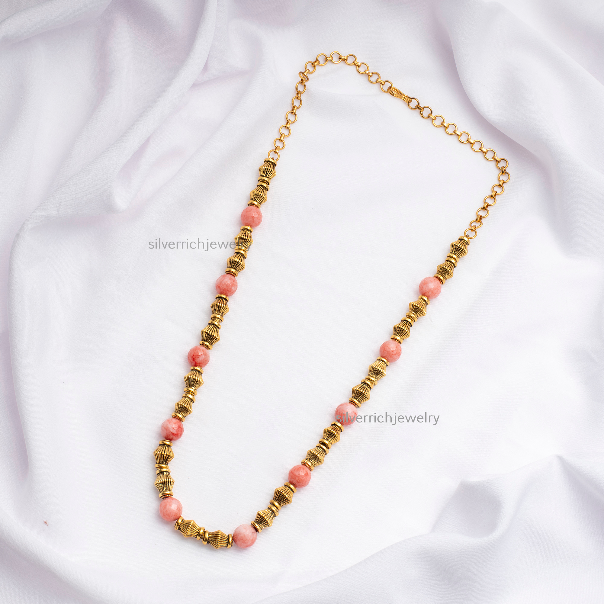 92.5 Silver gold plated chain with semi precious stones & beads