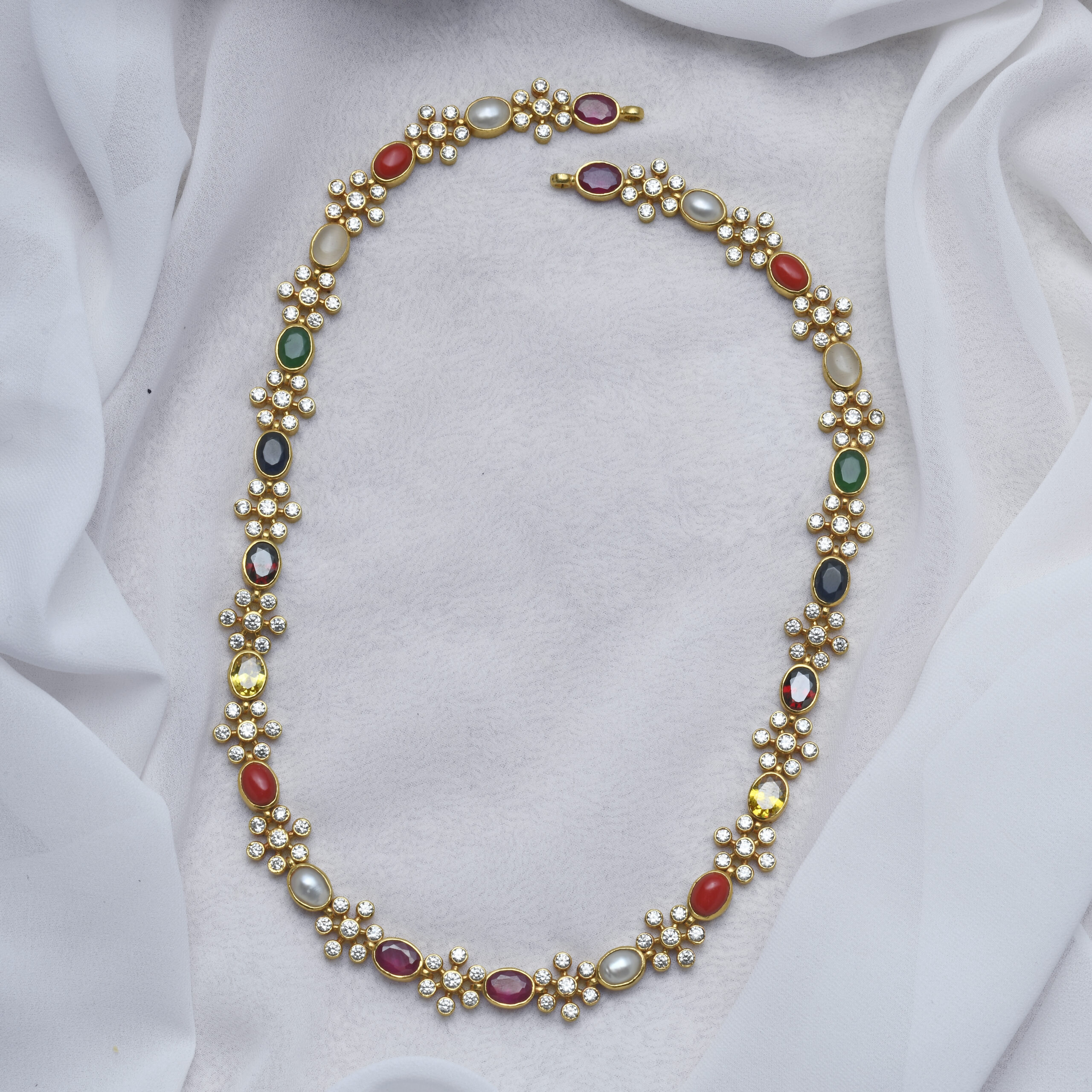 92.5 Silver gold plated haram with semi precious stones