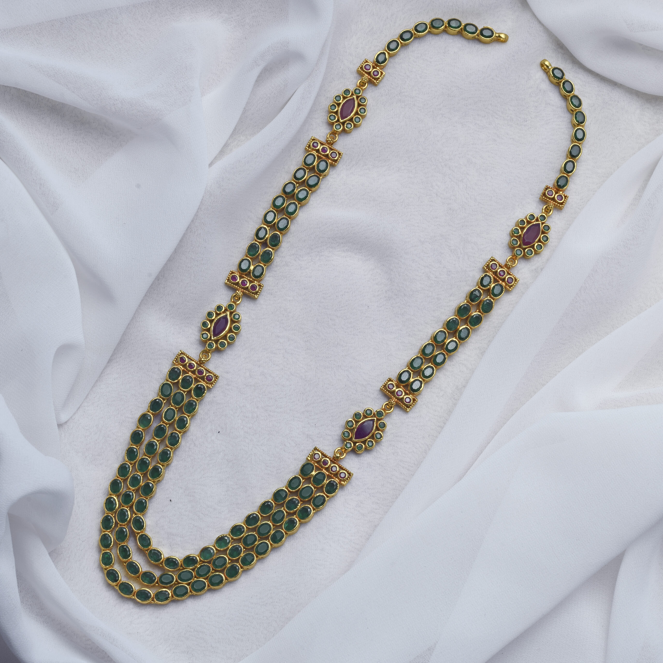 92.5 Silver gold plated haram with semi precious stones