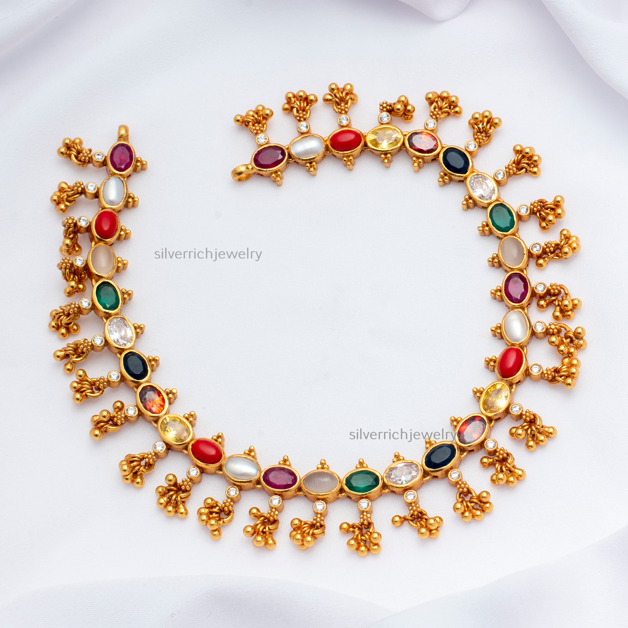 92.5 Silver gold plated necklace with semi precious stones