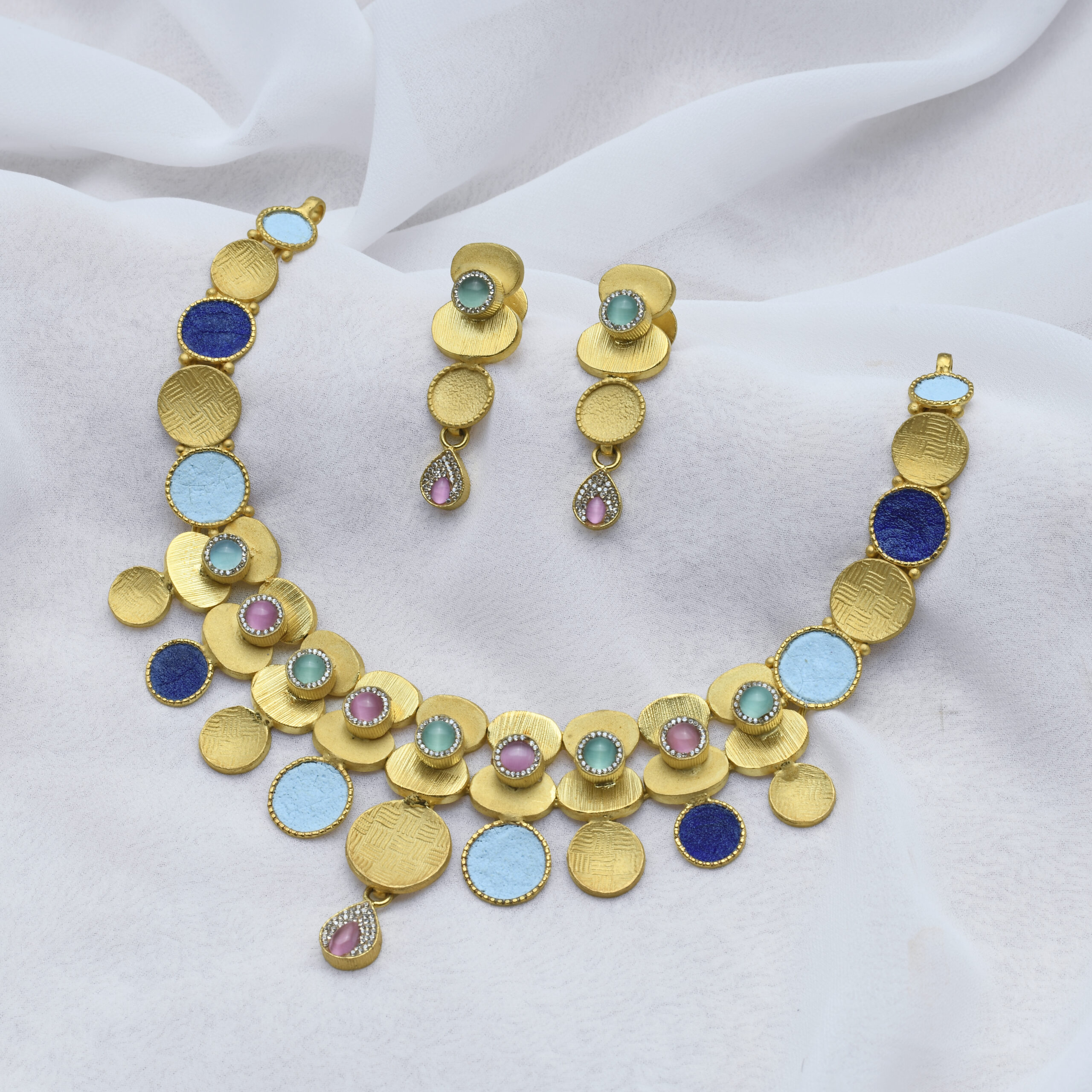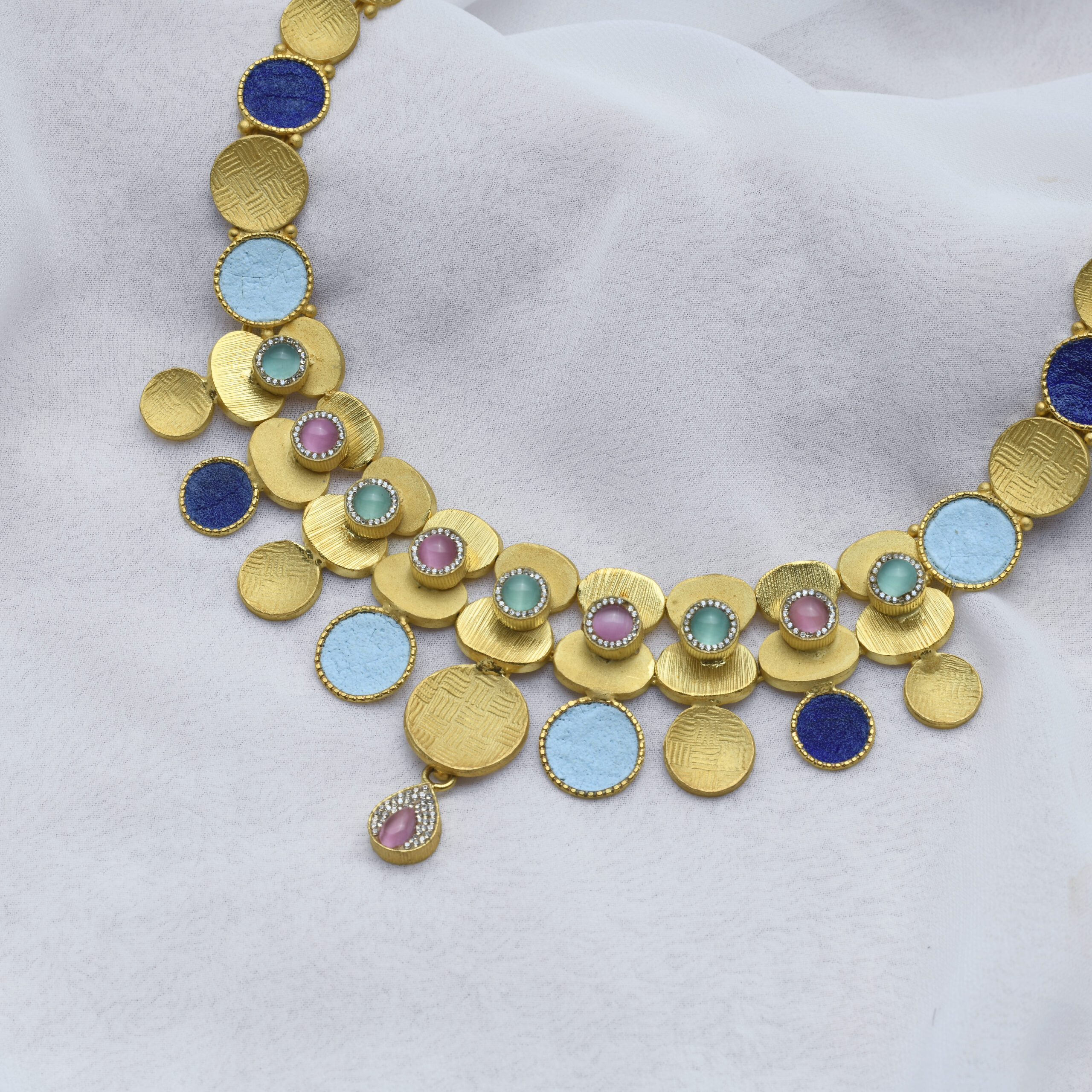 92.5 Silver gold plated necklace with semi precious stones