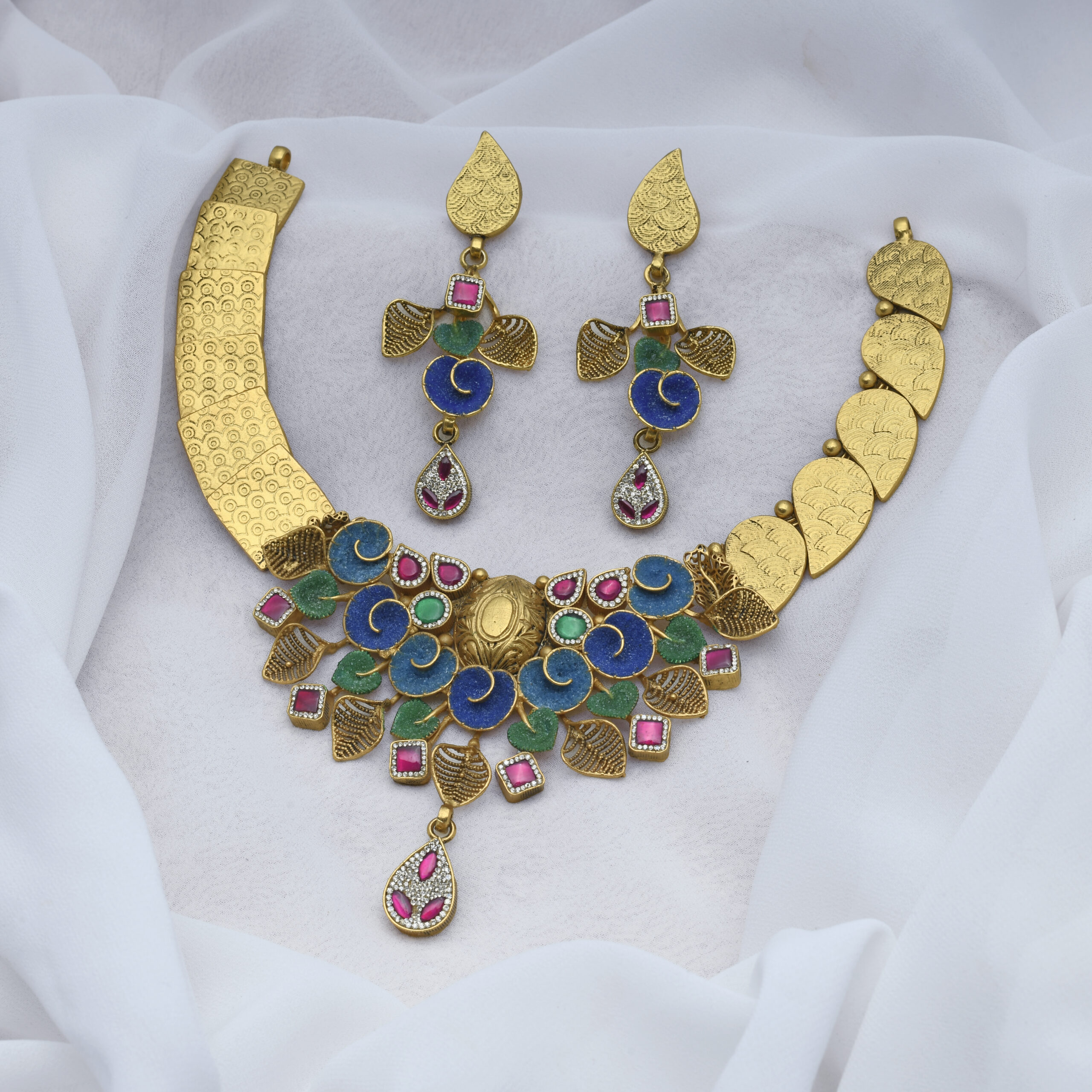 DimensionsLENGTH OF THE PENDANT (cms): 13.5 WIDTH OF THE PENDANT (cms): 12 LENGTH OF THE EARRING (cms): 6.5 WIDTH OF THE EARRING (cms): 2.5