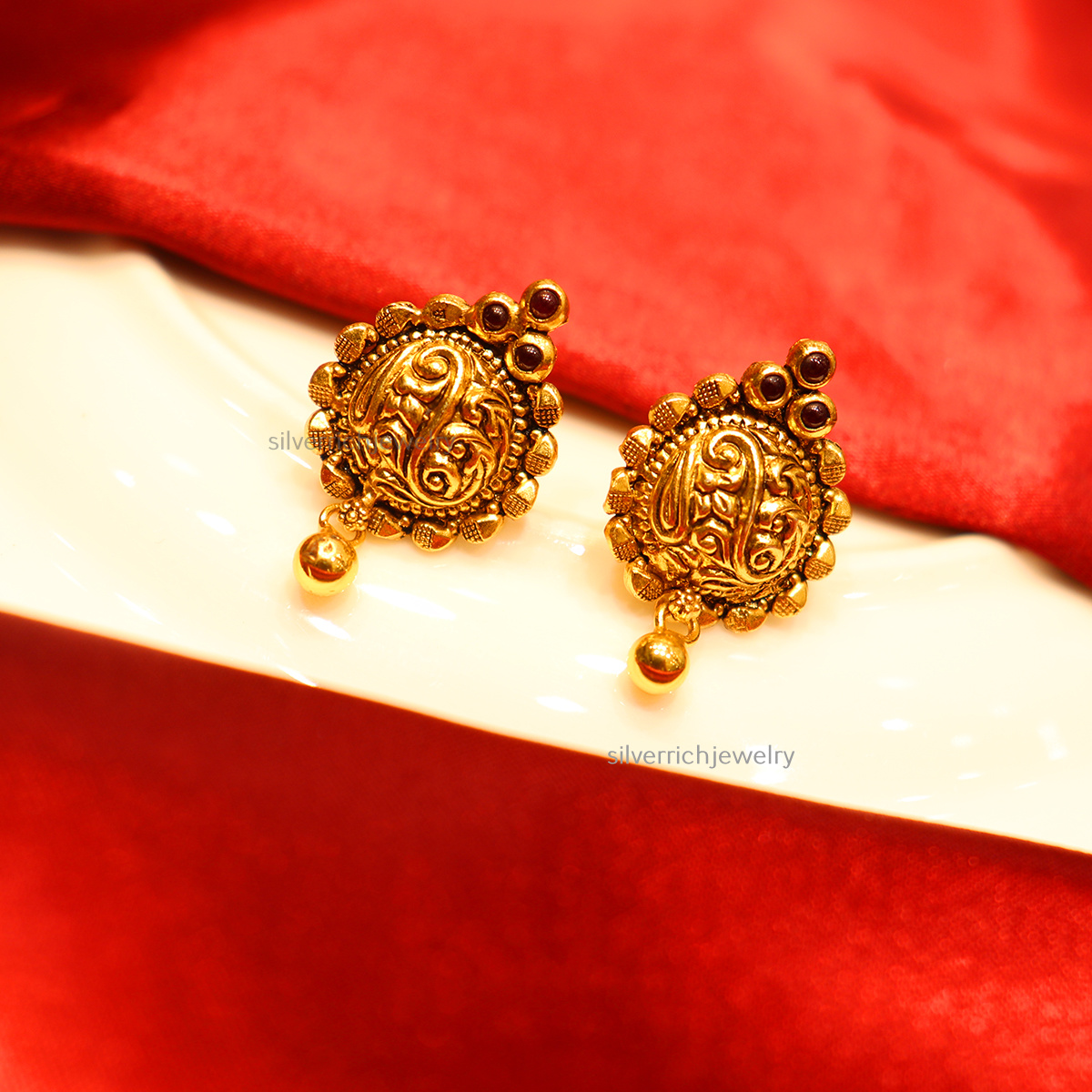 92.5 Silver gold plated stud with semi precious stones